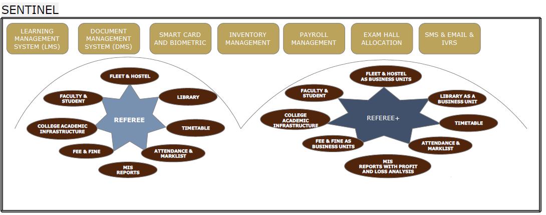 1) All Academic Operations Management (Marklist,Attendance,Internal Marks,Timetable)2) Fees Management